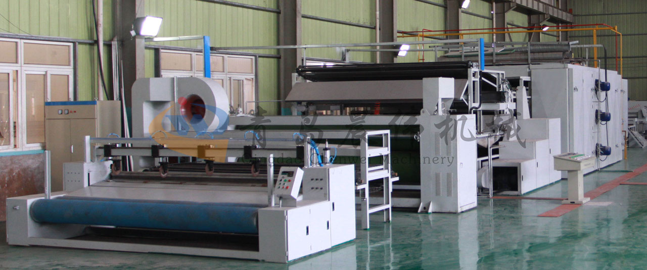 7. CWTG-燙光機(jī):高溫高壓軋光處理,使之組織緊密,表面光整并達(dá)到規(guī)定的厚度和表觀要求。應(yīng)用于針刺棉和其它輕克重的非織造布如噴膠棉、仿絲棉、無(wú)膠棉的生產(chǎn)。加熱方式:內(nèi)悶式電熱管加熱,加熱介質(zhì)為導(dǎo)熱油循環(huán)。耐熱合金鋼加熱輥,表面鍍硬鉻,外涂特氟龍。恒溫方法:自動(dòng)電器控制或電動(dòng)電磁調(diào)節(jié)閥