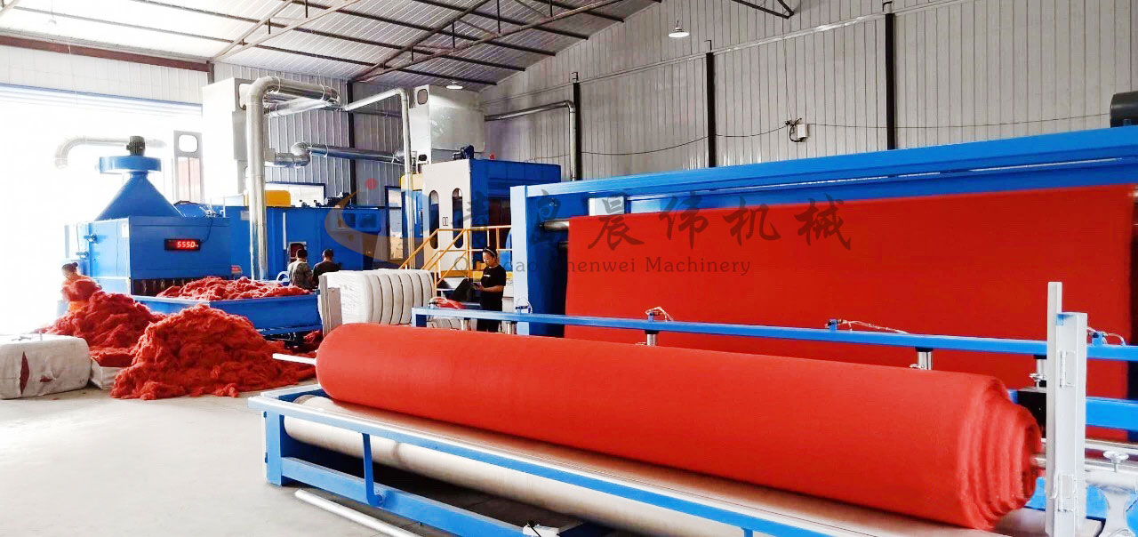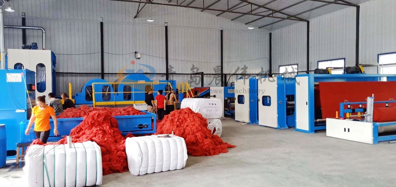 開包機(jī)-開松機(jī)-振動給棉機(jī)-梳理機(jī)-鋪網(wǎng)機(jī)-針刺機(jī)-切邊成卷機(jī)